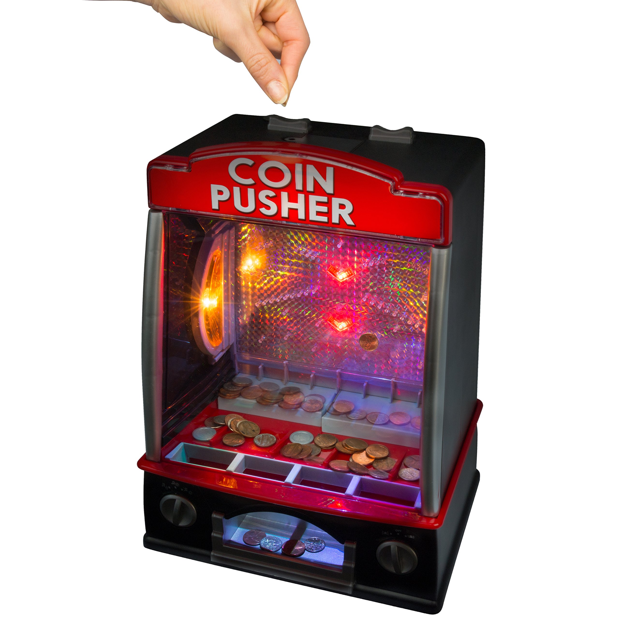Amazon Com Toydaloo Mini Coin Pusher Home Arcade Game With Lights And Sounds Includes 150 Play Coins Toys Games